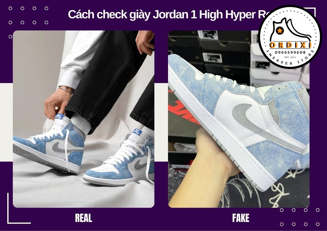 Cách nhận biết giày Jordan 1 Hyper Royal là hàng giả