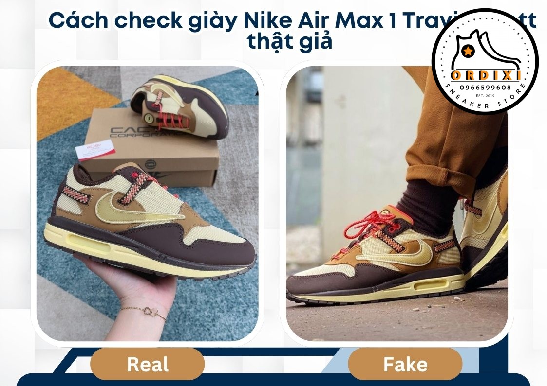 Tóm tắt cách nhận biết giày Nike Air Max 1 Travis Scott