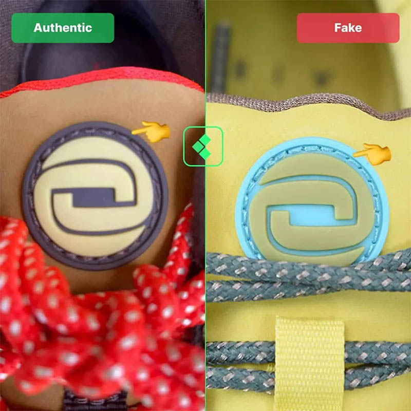 - Giày chính hãng: Đường khâu thật dày hơn và đường chỉ trên đôi giày giả dài hơn.