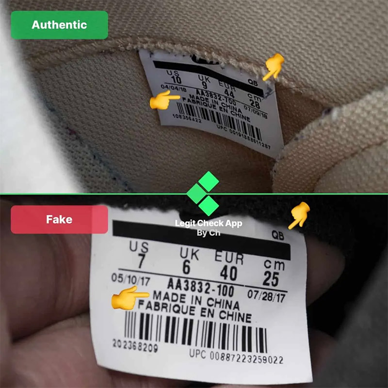 - Màu sắc tấm đế : Mặc dù ánh sáng có thể ảnh hưởng đến nhận thức, giày giả có thể có màu quá nhạt, với tấm đế có màu trắng thay vì màu xám đậm.