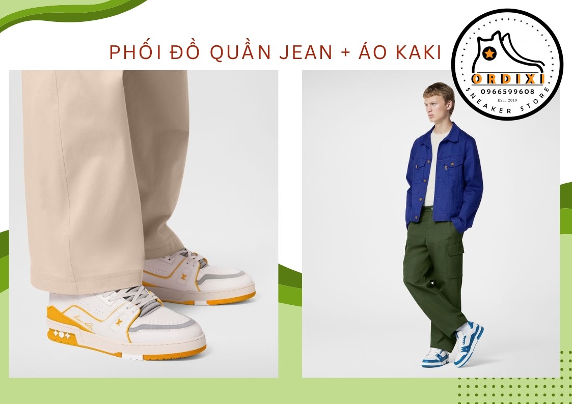10. Kết hợp giày Louis Vuitton quần Jean và áo Kaki