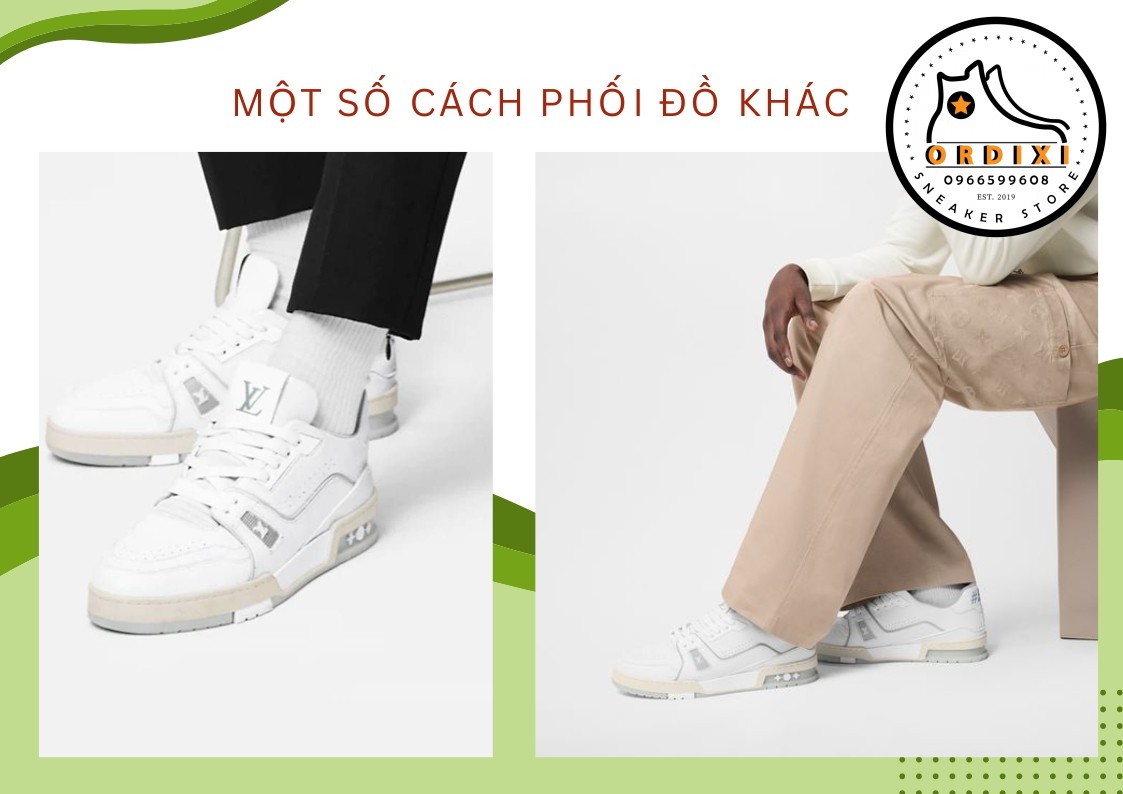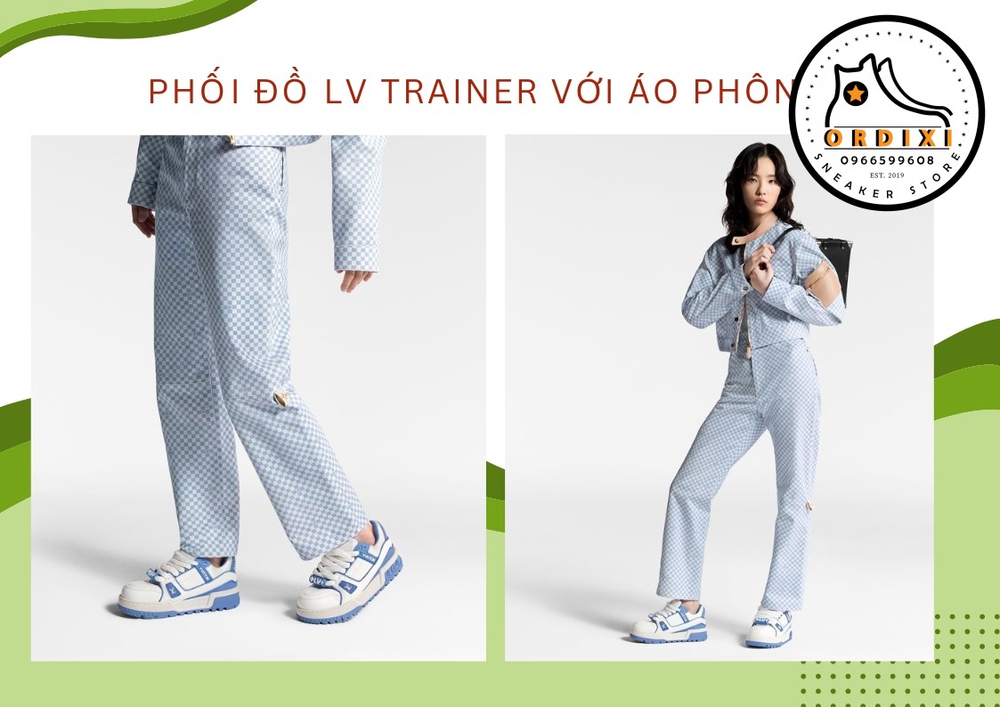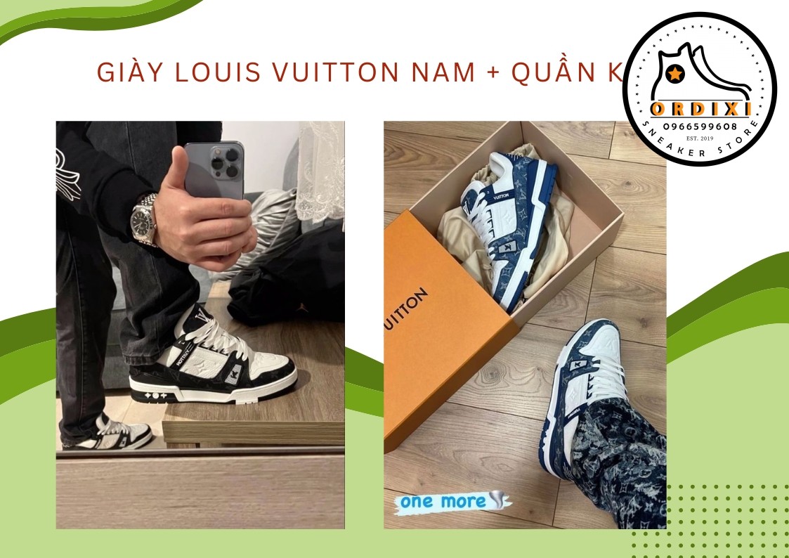 Nếu bạn đang tìm kiếm đến một phong cách thời trang trẻ trung thanh lịch và đẳng cấp thì phối đồ giữa Louis Vuitton LV Trainer quần jean sẽ giúp bạn có vẻ ngoài năng động cuốn hút thu hút mọi ánh nhìn. Bạn hãy lựa chọn màu sắc của áo và giày một cách hài hoà đồng thời kết hợp tyheem túi xách hay mũ để có diện mạo sành điệu sang chảnh.