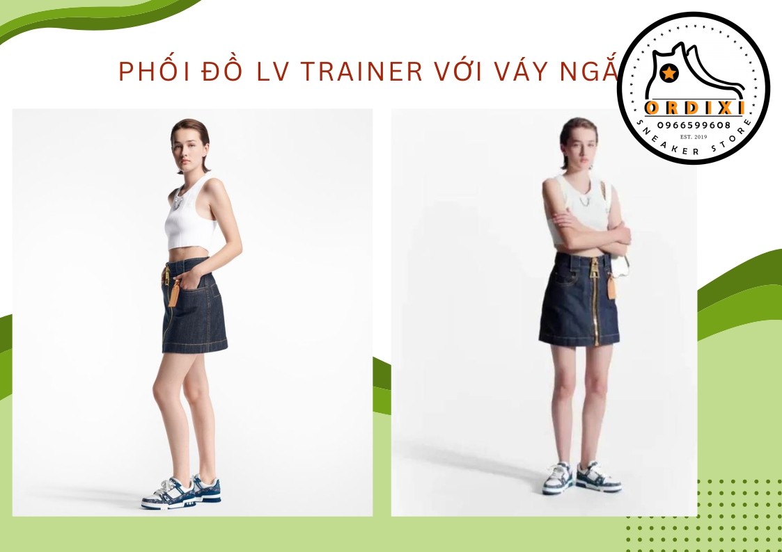 5. Phối đồ Louis Vuitton LV Trainer với váy ngắn