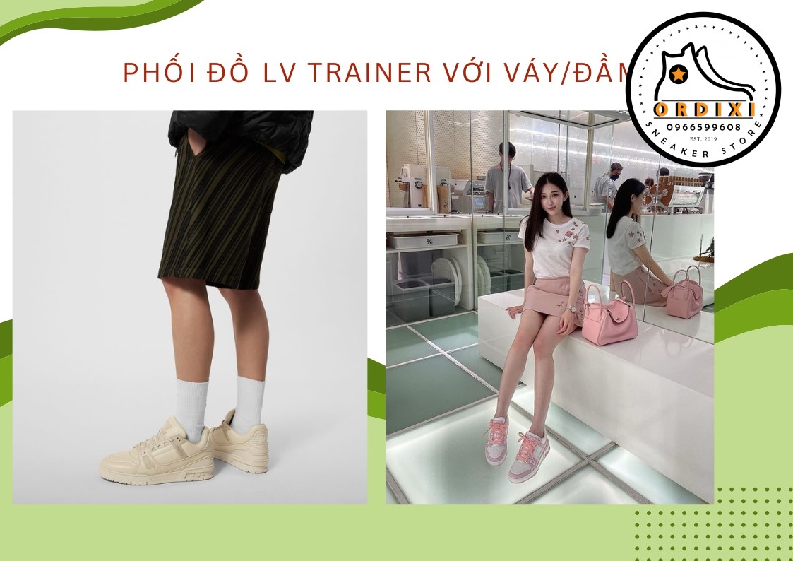 Sự kết hợp giữa giày LV Trainer với váy đầm tạo nên một phong cách cá tính, phá cách nhưng không kém phần lịch sự. Đồng thời Outfit này giúp tôn lên nét gợi cảm cá tính và thanh lịch cho bất kỳ ai sở hữu.