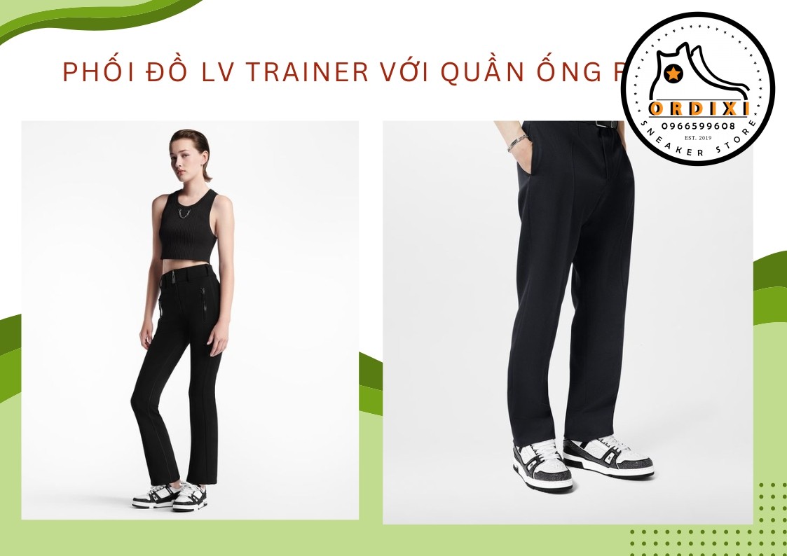 Khi kết hợp giày LV Trainer với một chiếc quần ống rộng mang đến cho bạn nét cá tính. Với kiểu trang phục này bạn nên kết hợp thêm chiếc áo Croptop để tôn dáng và có vẻ ngoài thêm cuốn hút và mới lạ.