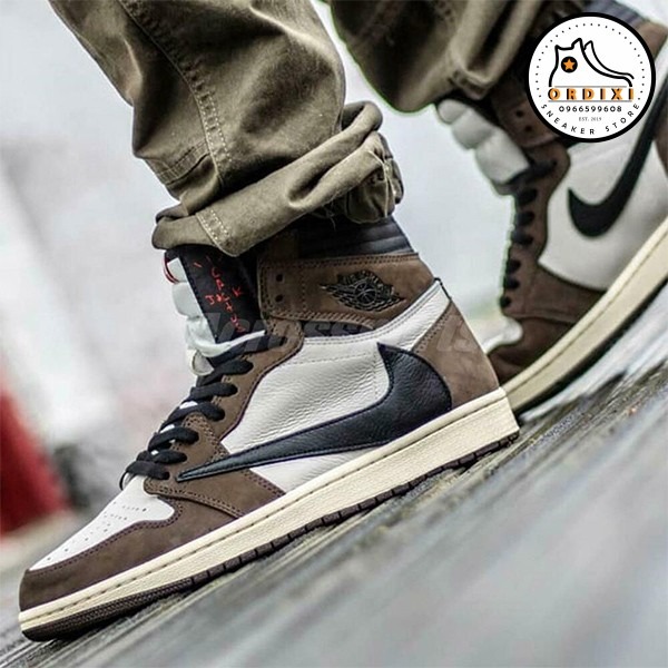 Nike Travis Scott x Air Jordan 1 High OG TS SP CD4487-100 với thiết kế đơn giản, dễ phối đồ và không kém phần sang trọng là những ưu điểm của giày sneakers trắng. Các chàng trai có thể chọn những đôi giày mang đường nét gọn gàng hoặc hình dáng đặc biệt hơn với phần đế cao.