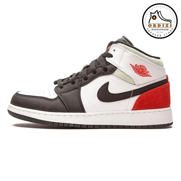 7. Nike Air Jordan 1 Mid Gs Se White Black Red-Spruce Bq6931-100