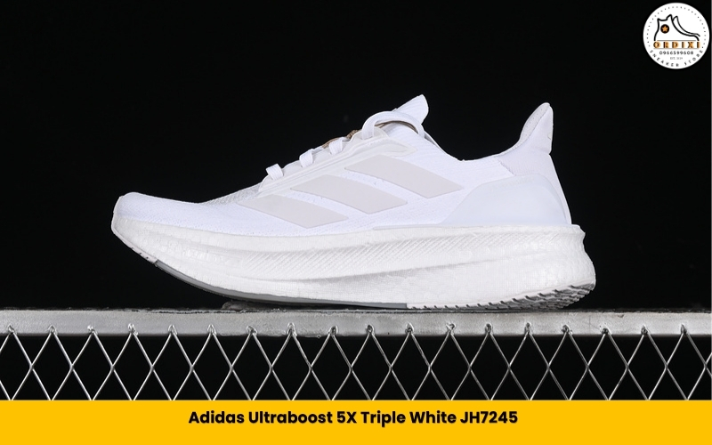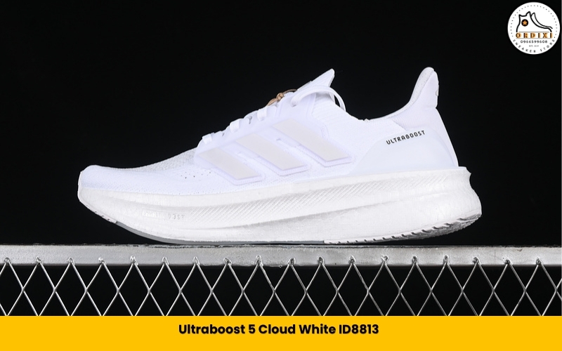 Mẫu giày này gây ấn tượng bởi sở hữu tone trắng chủ đạo, mang lại vẻ ngoài sạch sẽ và thanh lịch. Đây là một trong những mẫu Ultra Boost 5 dễ phối đồ phù hợp với nhiều phong cách khác nhau.
