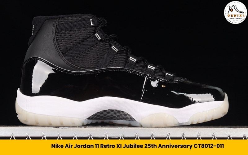 Mẫu giày này gây ấn tượng với phần thiết kế upper đen bóng tạo cảm giác cực kỳ sang trọng. Đây là một trong những bản Jordan 11 được nhiều người yêu thích lựa chọn.