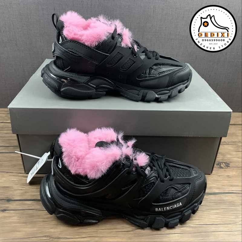Balenciaga Track Fur Sneaker Contrast Fakefur Mesh Nw Black Pink 668555