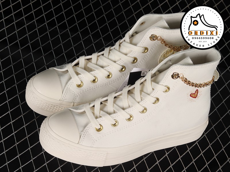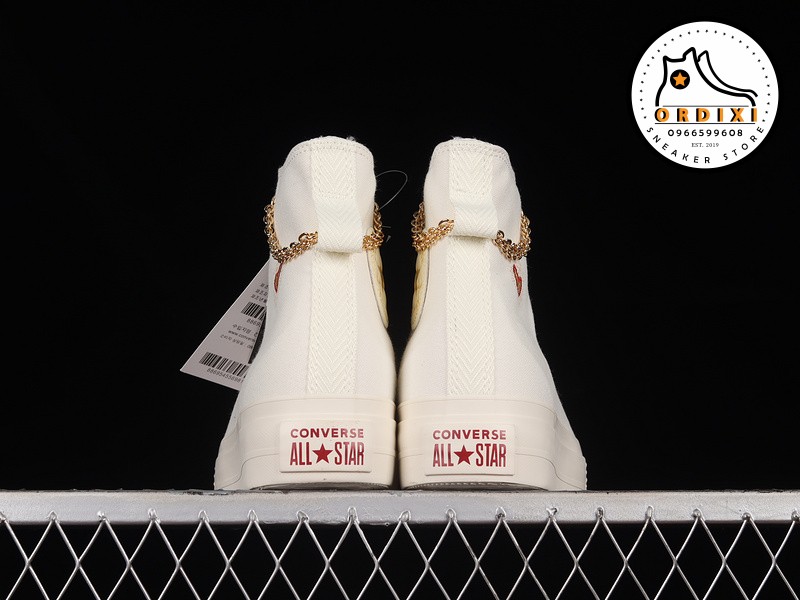Converse Chuck Taylor All-Star Platform Gold Chain Thriftshop Yellow – A04453Cthiết kế với kiểu dáng hiện đại, thể thao và phóng khoáng. Chất liệu da cao cấp và vải canvas mềm mại được sử dụng để tạo nên đôi giày này, mang lại sự thoải mái và độ bền cho người sử dụng.