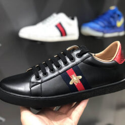 Gucci Ace Embroidered Low-Top Sneaker Bee Black đôi giày được thiết kế năng động sành điệu và vô cùng cuốn hút. Sử dụng chất liệu da cao cấp cùng phối màu tinh tế cùng họa tiết bắt mắt trên đôi giày đã đốn tim biết bao tín đồ thời trang. Sở dĩ đôi giày này chiếm trọn cảm tình của cộng đồng bởi thiết kế nổi bật lạ mắt và đầy quyền lục, chỉ cần sở hữu một đôi giày đến từ thương hiệu nổi tiếng cũng đã làm cho họ đầy tự hào. Kiểu dáng của giày được thiết kế cổ điển đầy sang trọng và thời thượng phù hợp với mọi nơi như dạo phố, công sở hay các diễn đàn thời trang danh giá.