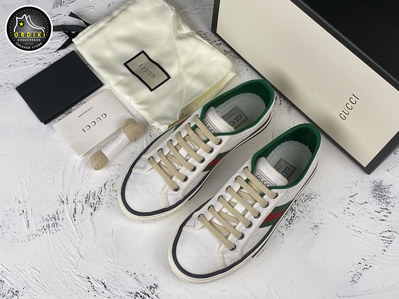 Gucci Ace Embroidered Low-Top Sneaker White Green Red đôi giày được thiết kế với họa tiết đặc sắc mang đậm nét đẹp cổ điển và đặc trưng của thương hiệu Gucci. Điểm nổi bật của đôi giày là logo được in ngay ngắn trên thân giày giúp tăng sự thời thượng và làm tăng độ nhận diện thương hiệu.