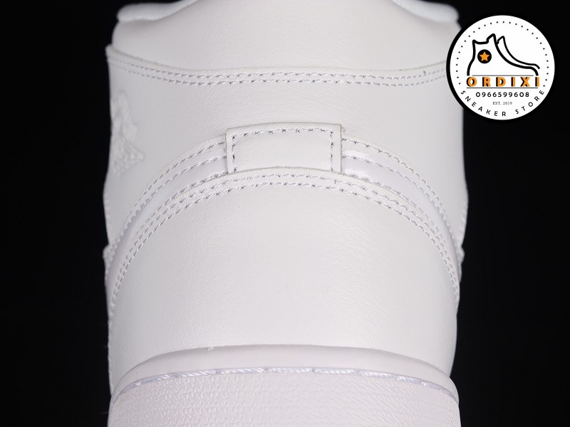 Được thiết kế với dạng cổ Mid, đôi giày Jordan 1 “Triple White” này sử dụng chất liệu da trắng mềm mại trên toàn bộ phần upper, tạo ra một vẻ ngoài sạch sẽ và sang trọng. Các chi tiết như dấu Swoosh ở mỗi bên và biểu tượng Wings trên cổ giày tạo thêm điểm nhấn tinh tế cho đôi giày.