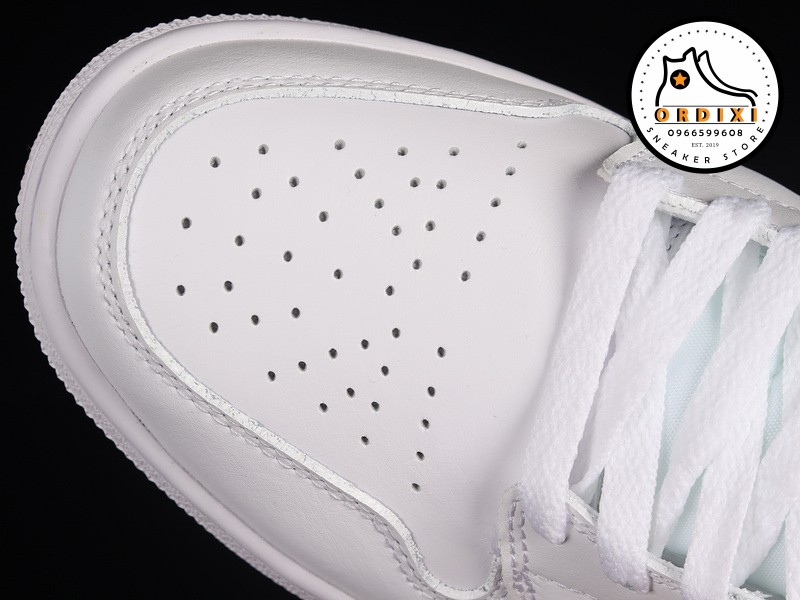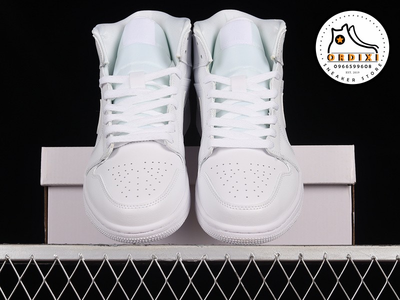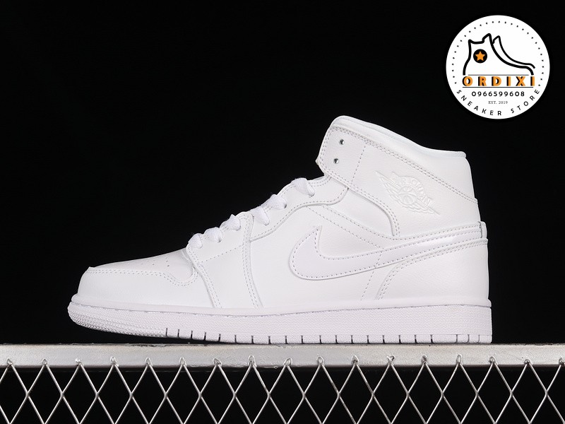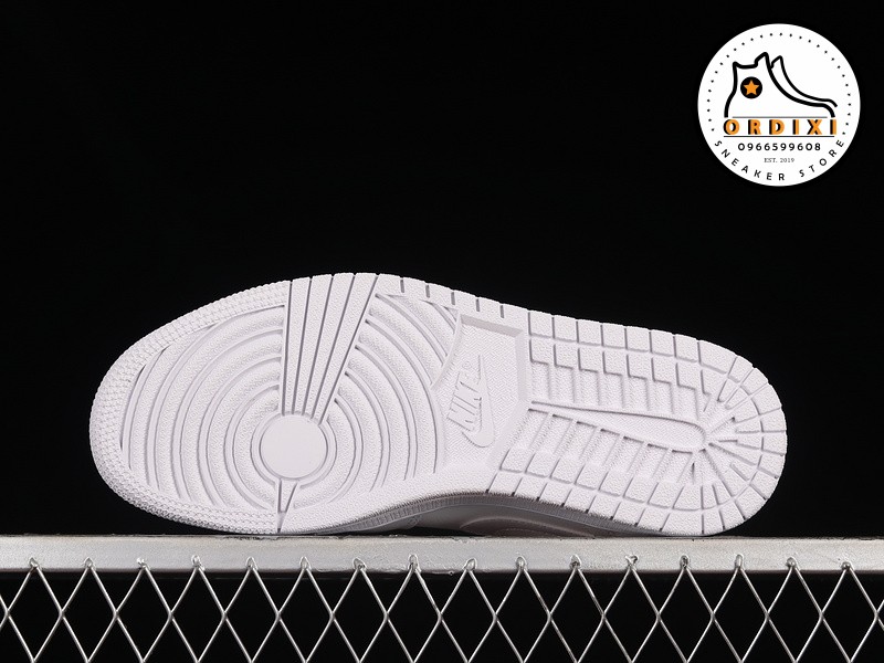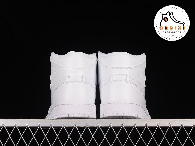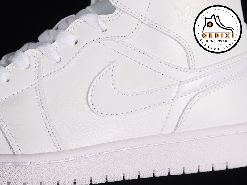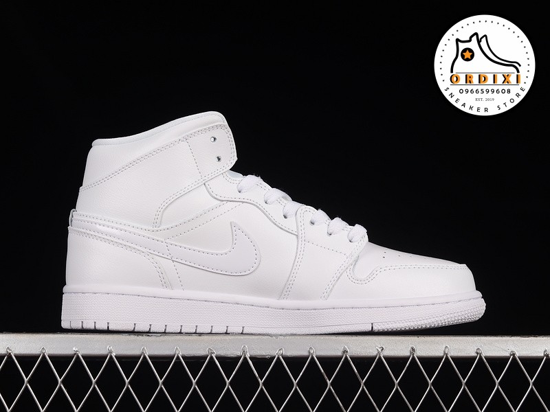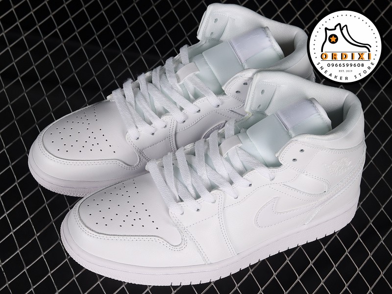 Được thiết kế với dạng cổ Mid, đôi giày Jordan 1 “Triple White” này sử dụng chất liệu da trắng mềm mại trên toàn bộ phần upper, tạo ra một vẻ ngoài sạch sẽ và sang trọng. Các chi tiết như dấu Swoosh ở mỗi bên và biểu tượng Wings trên cổ giày tạo thêm điểm nhấn tinh tế cho đôi giày.