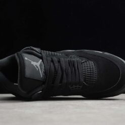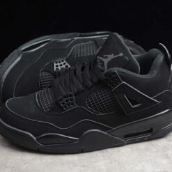 Giày Nike Air Jordan 4 Retro “Black Cat” được thiết kế với màu đen toàn bộ, tạo nên vẻ bóng bẩy, lịch lãm và sang trọng. Điểm nhấn của đôi giày này là họa tiết lưới trên mặt trên và mặt bên giày, tạo ra sự thoáng khí và thêm phần hiện đại cho thiết kế. Đế giày được làm từ chất liệu cao su đen, giúp tăng độ bền cho đôi giày và tạo cảm giác thoải mái khi sử dụng. Logo “Jumpman” được thêu một cách tinh tế trên mặt trên và mặt sau của giày, tạo nên sự độc đáo và thể hiện được tính chất thương hiệu của Nike Air Jordan. Với sự kết hợp hoàn hảo giữa màu sắc và chất liệu, đôi giày này là sự lựa chọn hoàn hảo cho những người yêu thích phong cách thể thao và đầy cá tính của Air Jordan.