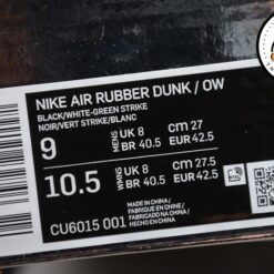 Nike Air Rubber Dunk Off-White Green Strike – CU6015-001 ra mắt thị trường với thiết kế vô cùng độc đáo & lạ mắt thu hút được cảm tình từ cái nhìn đầu tiên . Nike Air Rubber Dunk Off-White Green Strike – CU6015-001 dòng giày được yêu thích nhất của hãng Nike, sở hữu thiết kế trẻ trung, cá tính, mức giá phù hợp và áp dụng công nghệ hiện đại mang những hiệu năng tuyệt vời.