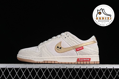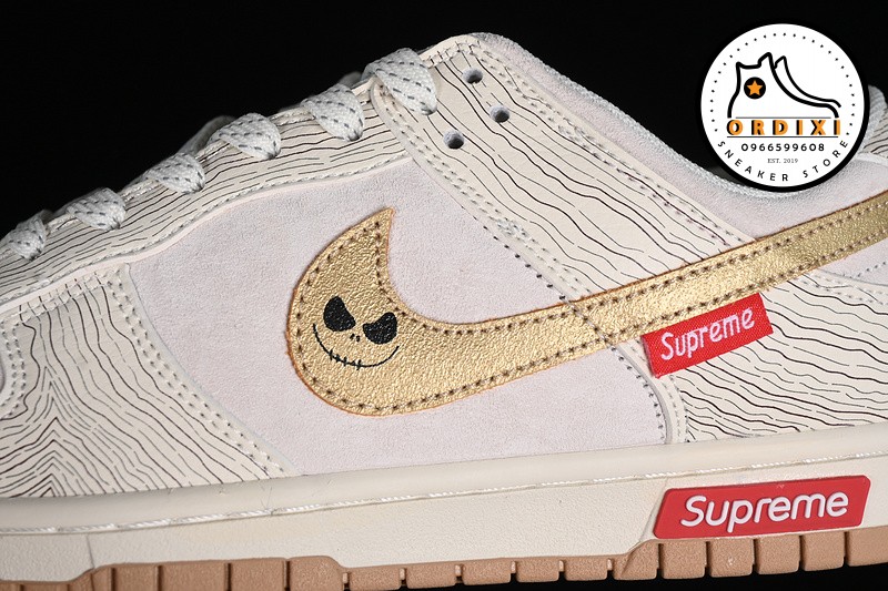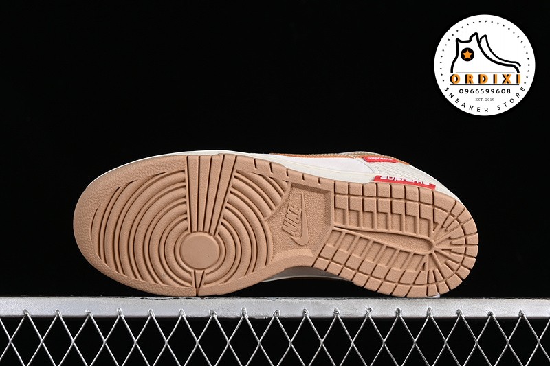 Hình ảnh chi tiết về giày Nike SB Dunk Low Supreme Beige Gold Red Blue XD6188-035