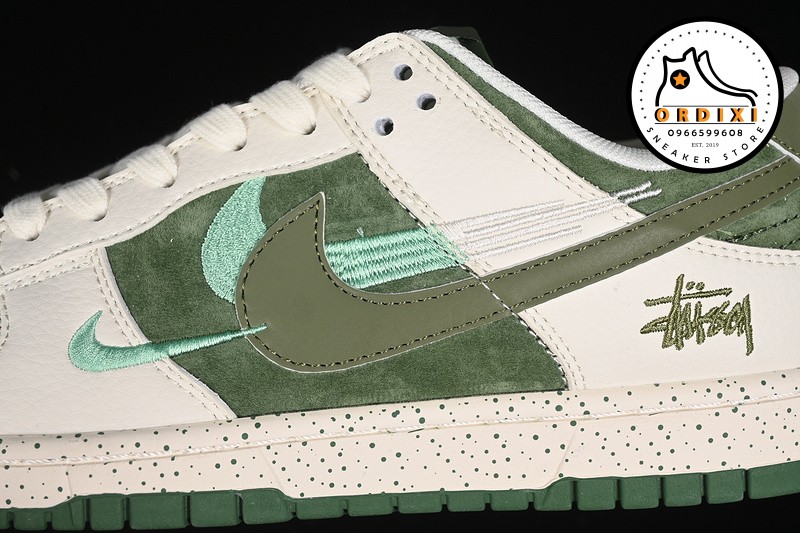 Nike SB Dunk Low “Off White Green” (mã DQ1098-396) là một phiên bản mang phong cách hiện đại với thiết kế nổi bật. Phần upper được làm từ chất liệu cao cấp, chủ yếu là màu trắng với các chi tiết màu xanh lá cây tươi sáng. Dấu Swoosh màu xanh nổi bật và các điểm nhấn khác tạo sự tương phản ấn tượng. Đôi giày có đế giữa chắc chắn và bám tốt, mang lại sự thoải mái và ổn định cho người mang. Với thiết kế thời trang và năng động, đôi giày này là sự lựa chọn hoàn hảo cho những ai yêu thích phong cách thể thao và hiện đại.