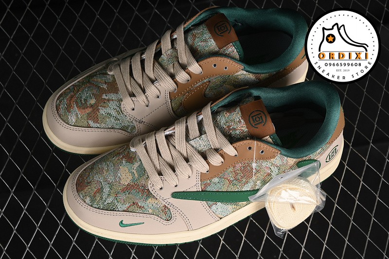 Hình ảnh chi tiết về giày Travis Scott X Fragment Design X Air Jordan 1 Low Og Sp Grey Brown Green JH6088-611