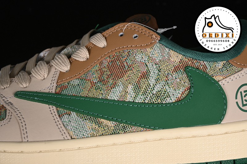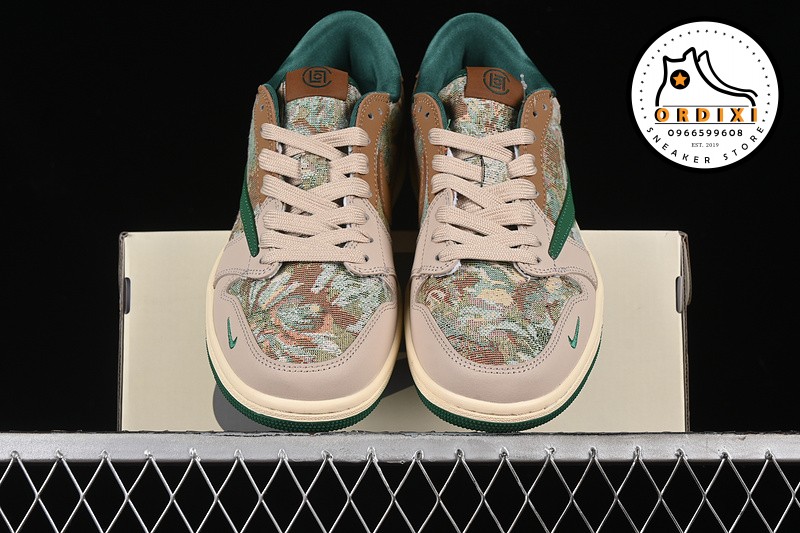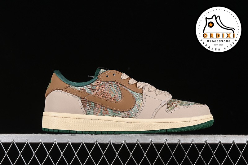 Hình ảnh chi tiết về giày Travis Scott X Fragment Design X Air Jordan 1 Low Og Sp Grey Brown Green JH6088-611