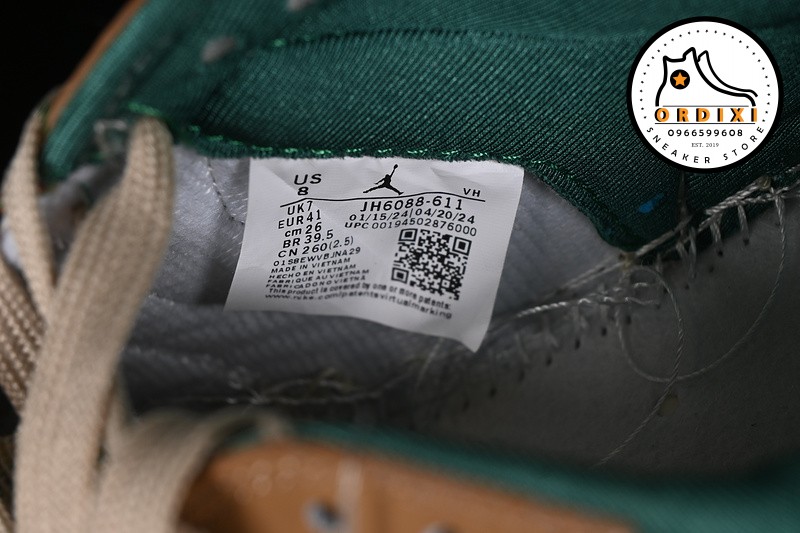 - Thiết kế: Giày có thiết kế với kiểu dáng cổ điển của Air Jordan, cùng với logo Jumpman và các chi tiết đặc trưng khác, tạo nên sự sang trọng và phong cách.