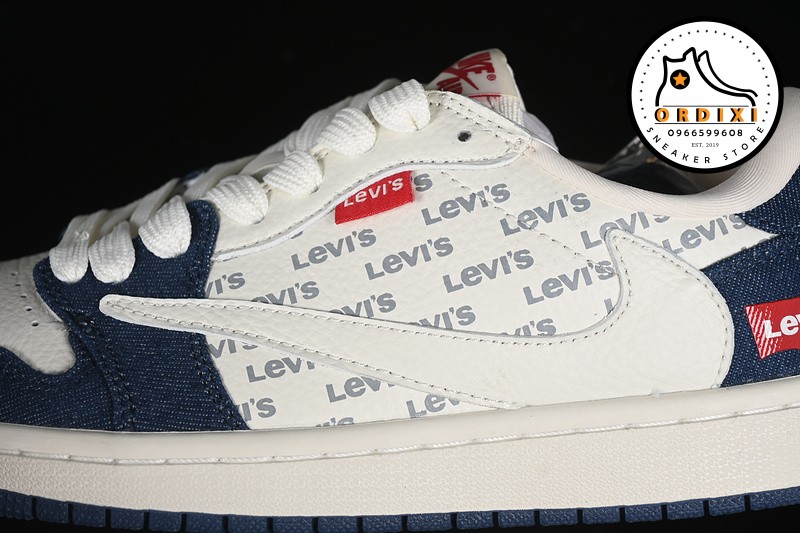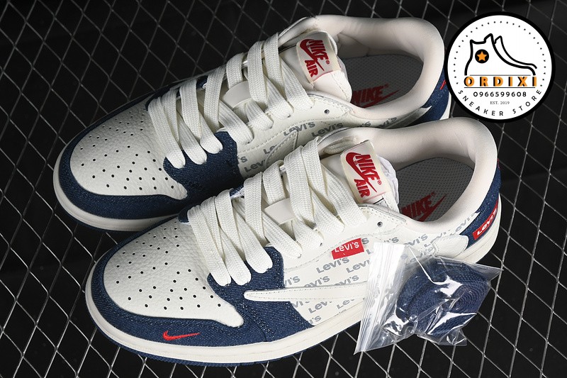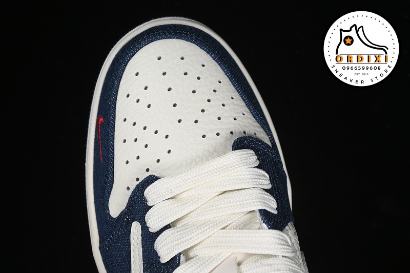 Hình ảnh chi tiết về giày Travis Scott X Fragment Design X Air Jordan 1 Low Og Sp Off White Blue Red JH6088-605